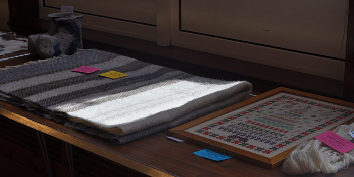 Eivor's article (centre-left) was judged the best article using a textile craft not on schedule (N.O.S.):