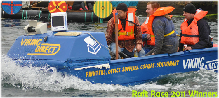 A Viking Direct-themed raft won the 2011 Raft Race, held today, Saturday, as part of the islands' annual Regatta and Watersports.