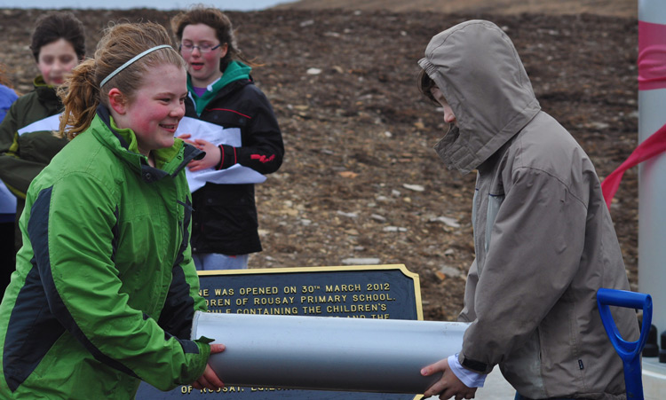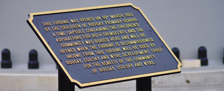 The children burried a time capsule, containing details of their individual aspirations for both themselves and the community, which will be re-opened when the turbine is