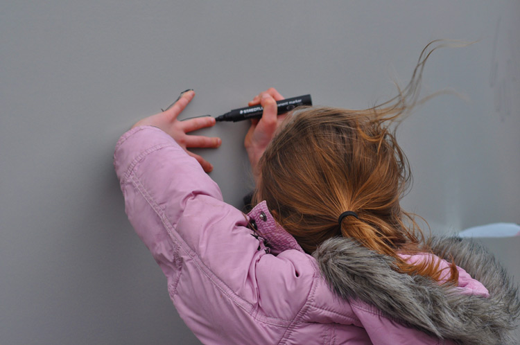 After pulling the ribbon, everybody was invited to draw around one of their hands on the turbine. Local artist, Rachael Harris will shortly be painting over the hands, to create